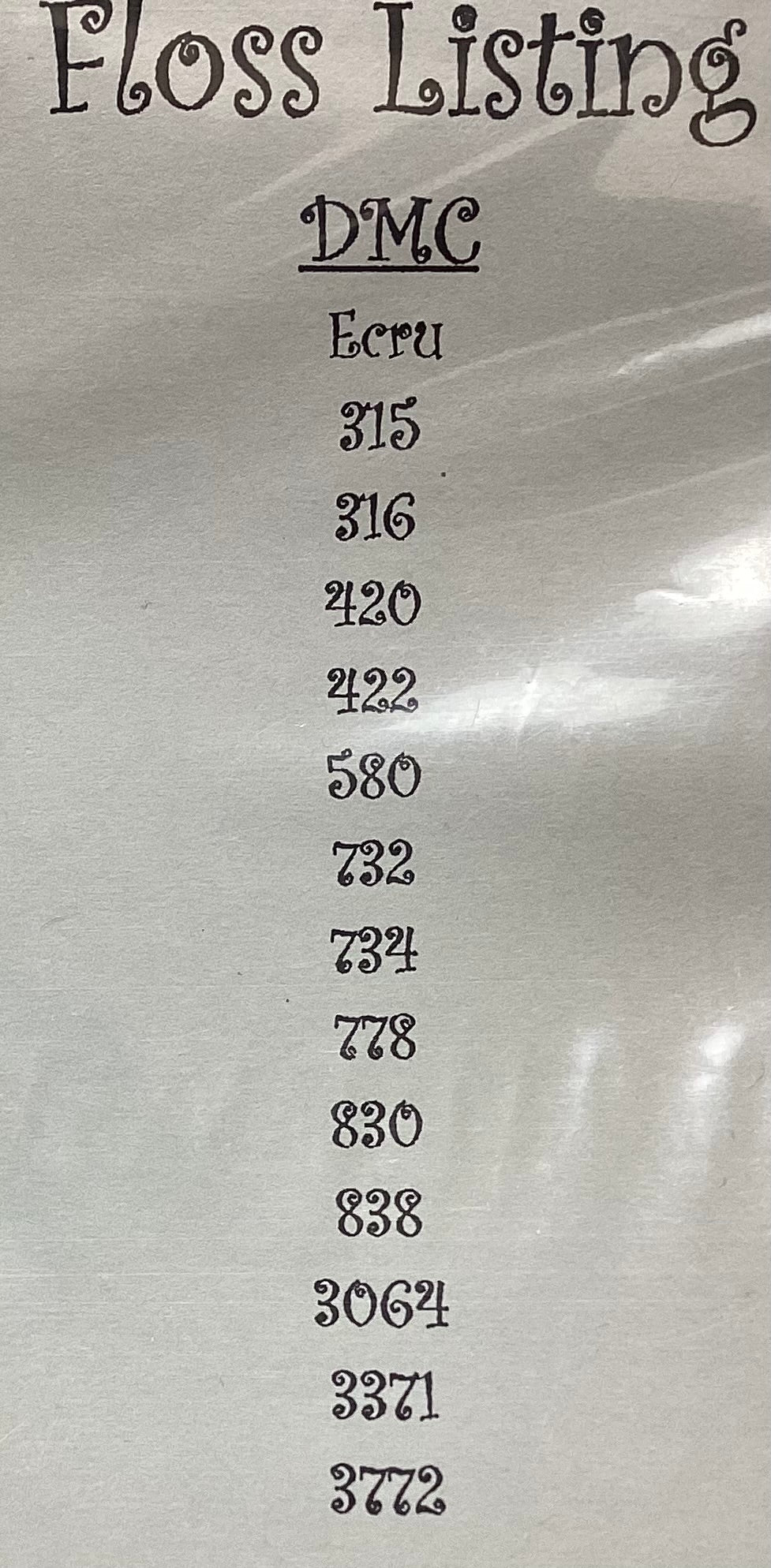 Stitch count: 67 x 128 on 28 count English arose linen by Wichelt