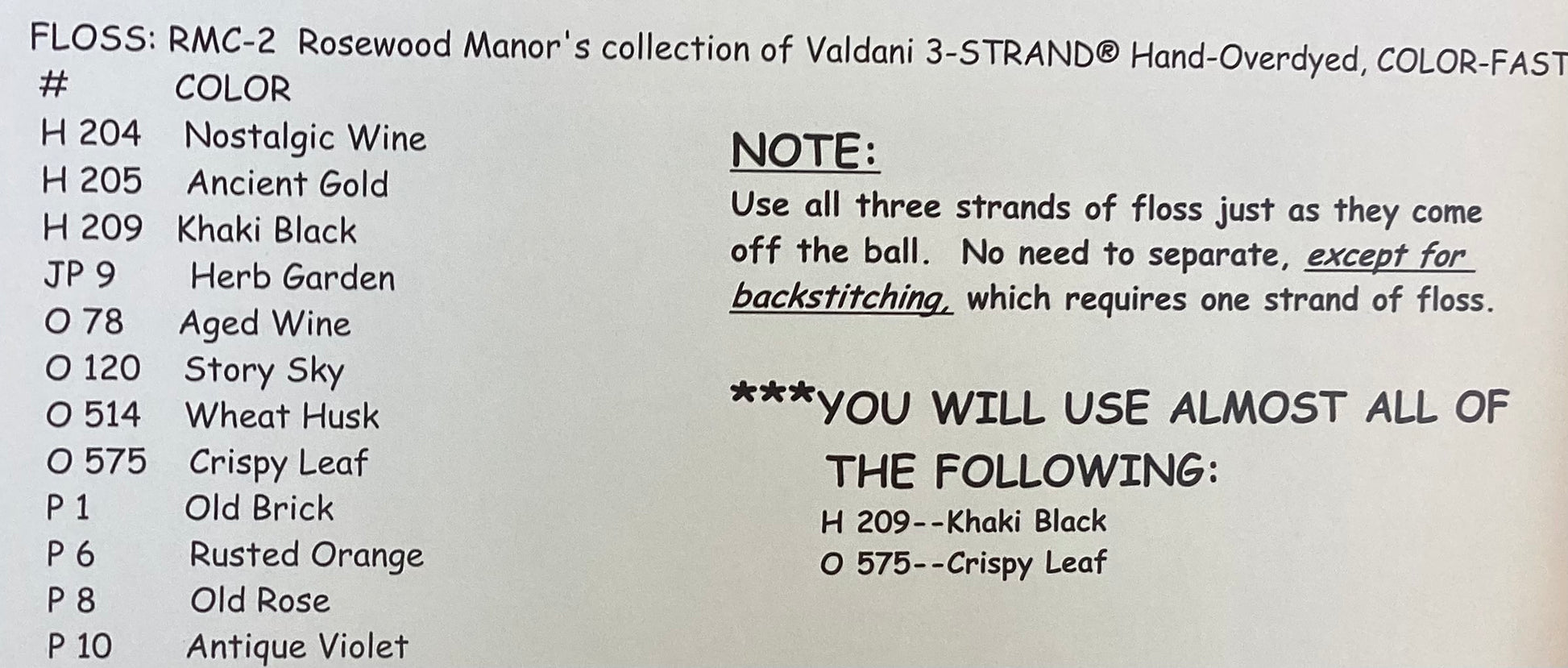 Stitch count: 170 x 270 on 28 count Valor Cashel linen by Picture This Plus