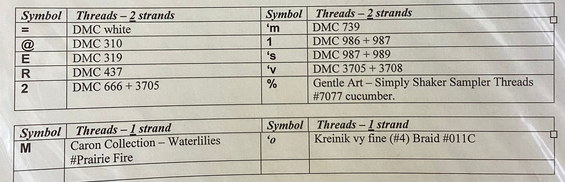 Stitch count:110 x 85 on 28 count White Chocoalte linen from Wichelt