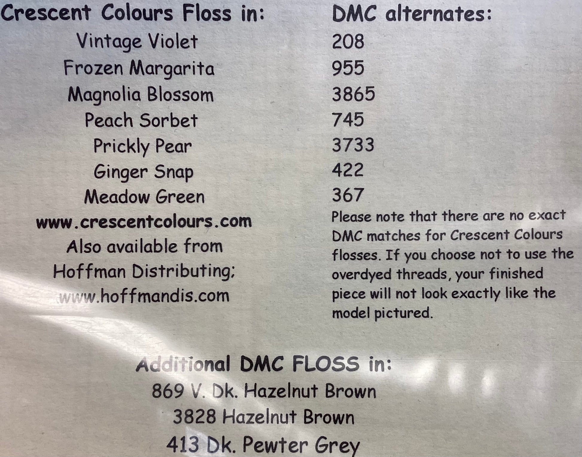Stitch count:70 x 70 on 32 count Crystal Chablis Lugana from Picture This Plus