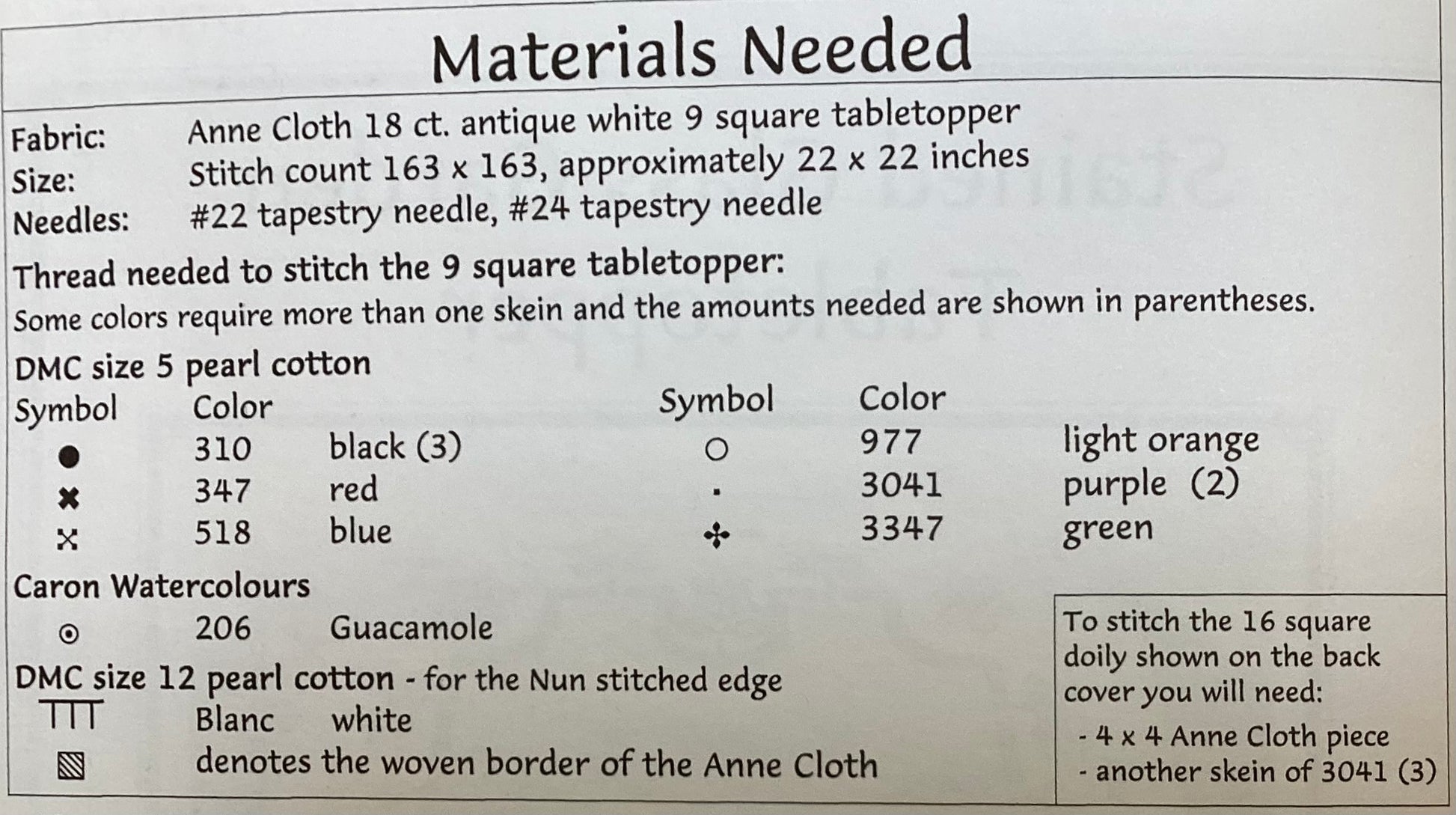 Stitch count:163 x 163 on 18 count Anne Cloth in antique white