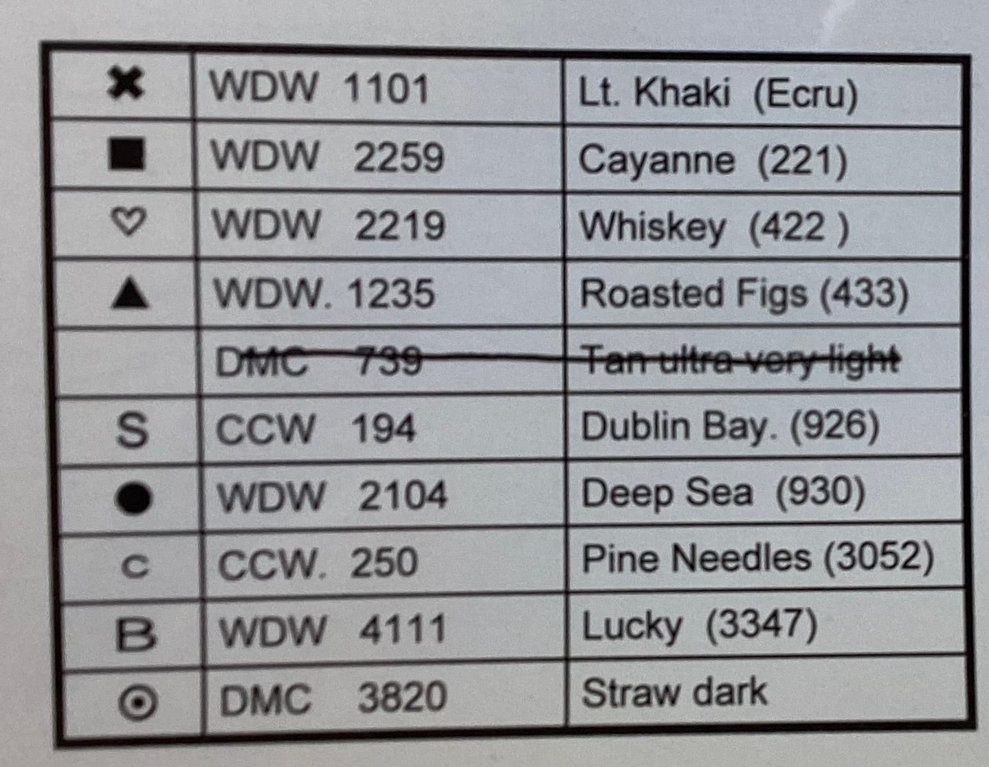 Stitch count: 89 x 125 on 32 count Vintage Country Mocha from Zweigart