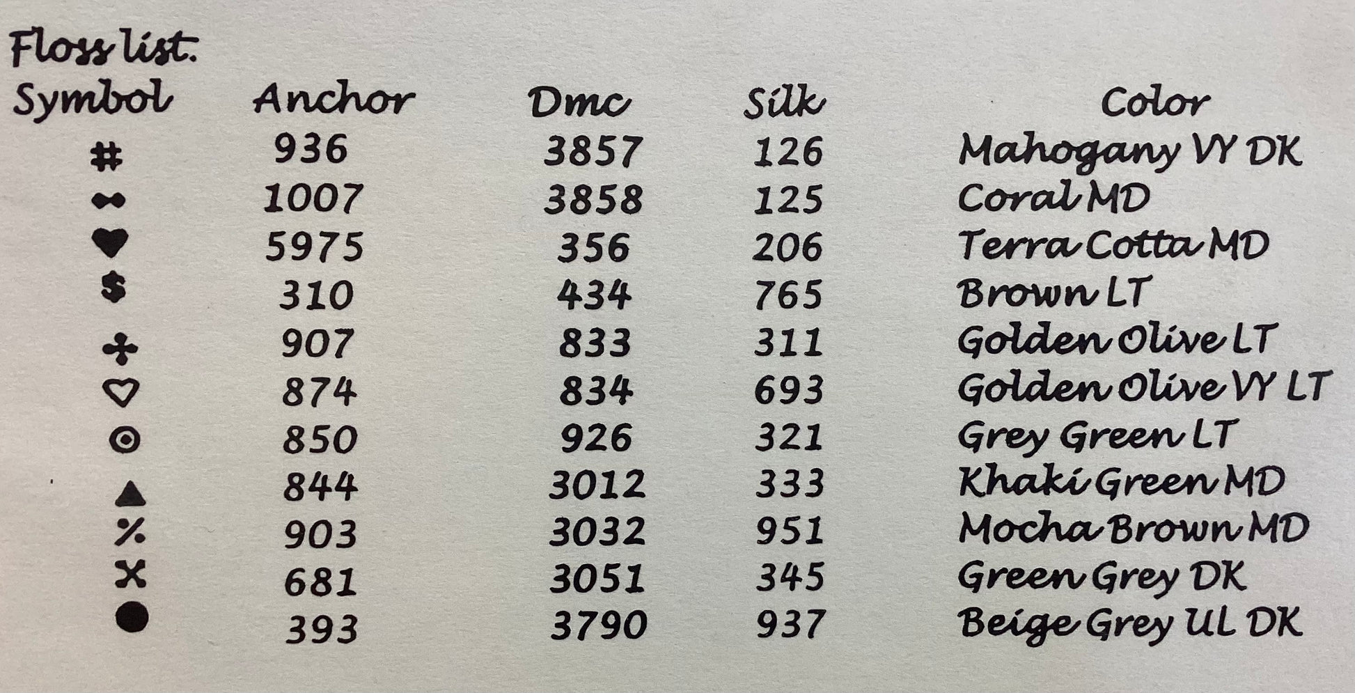 Stitch count: 106 x 95 on 36 count Meadow Lark linen by Birds of a Feather
