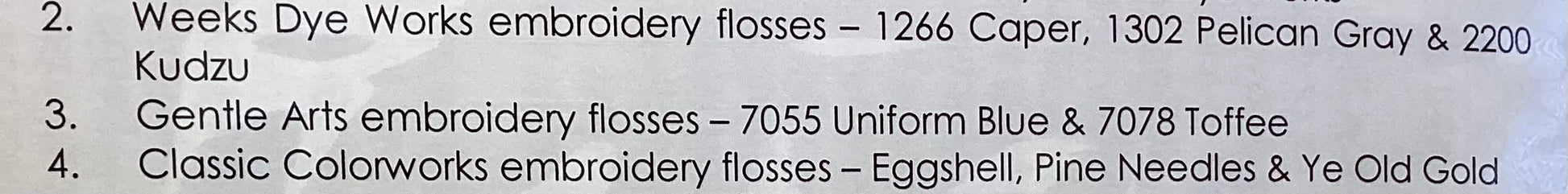Modeled on 40 count Parchemnt linen by Weeks Dye Works