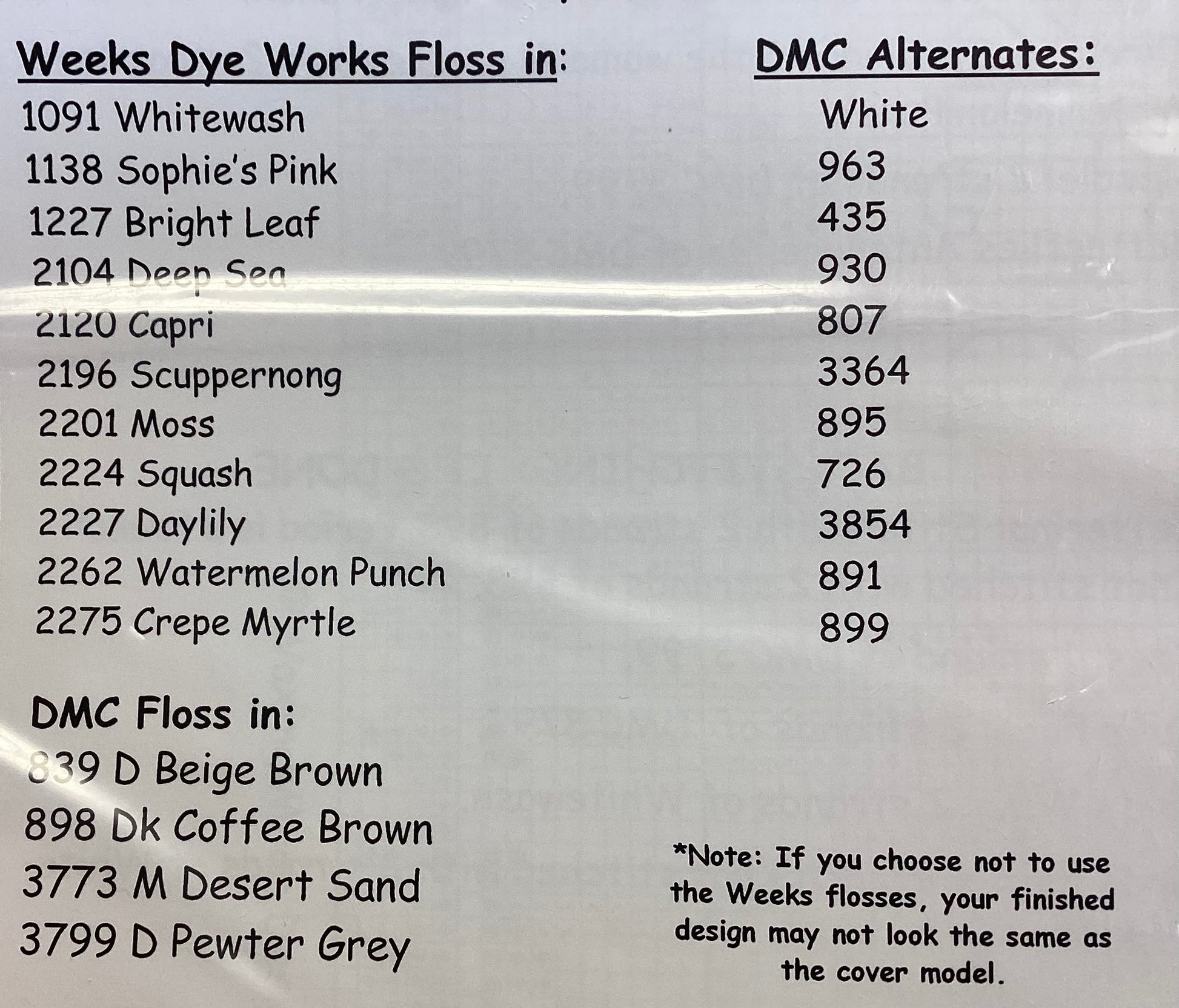 Modeled on 30 count Linen linen by Weeks Dye Works