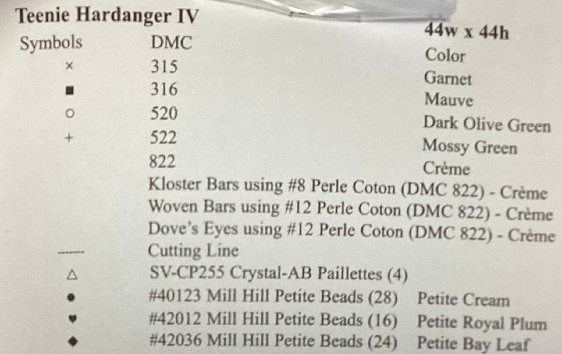 Stitch count: 44 x 44 on 28 count Platinum Cashel linen