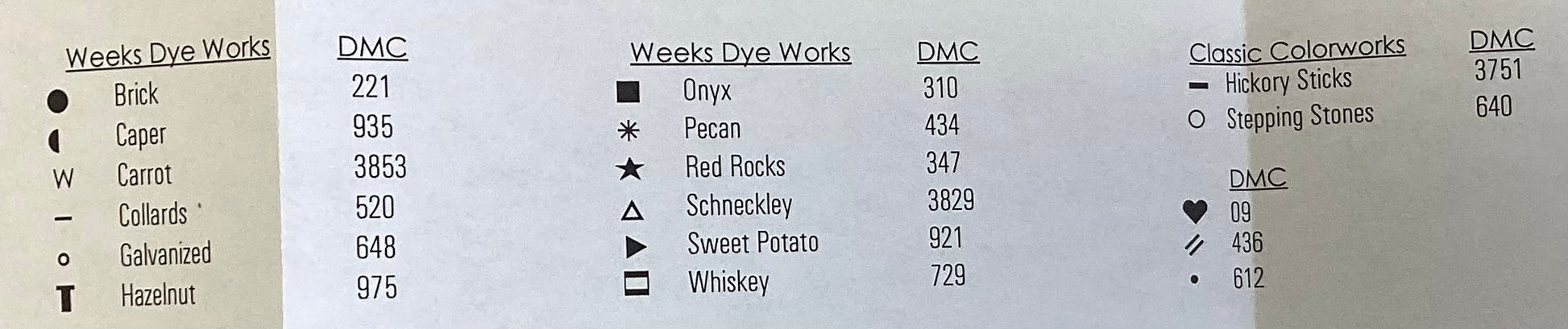 Stitch count: 154 x 68 on 32 count Light Mocha linen