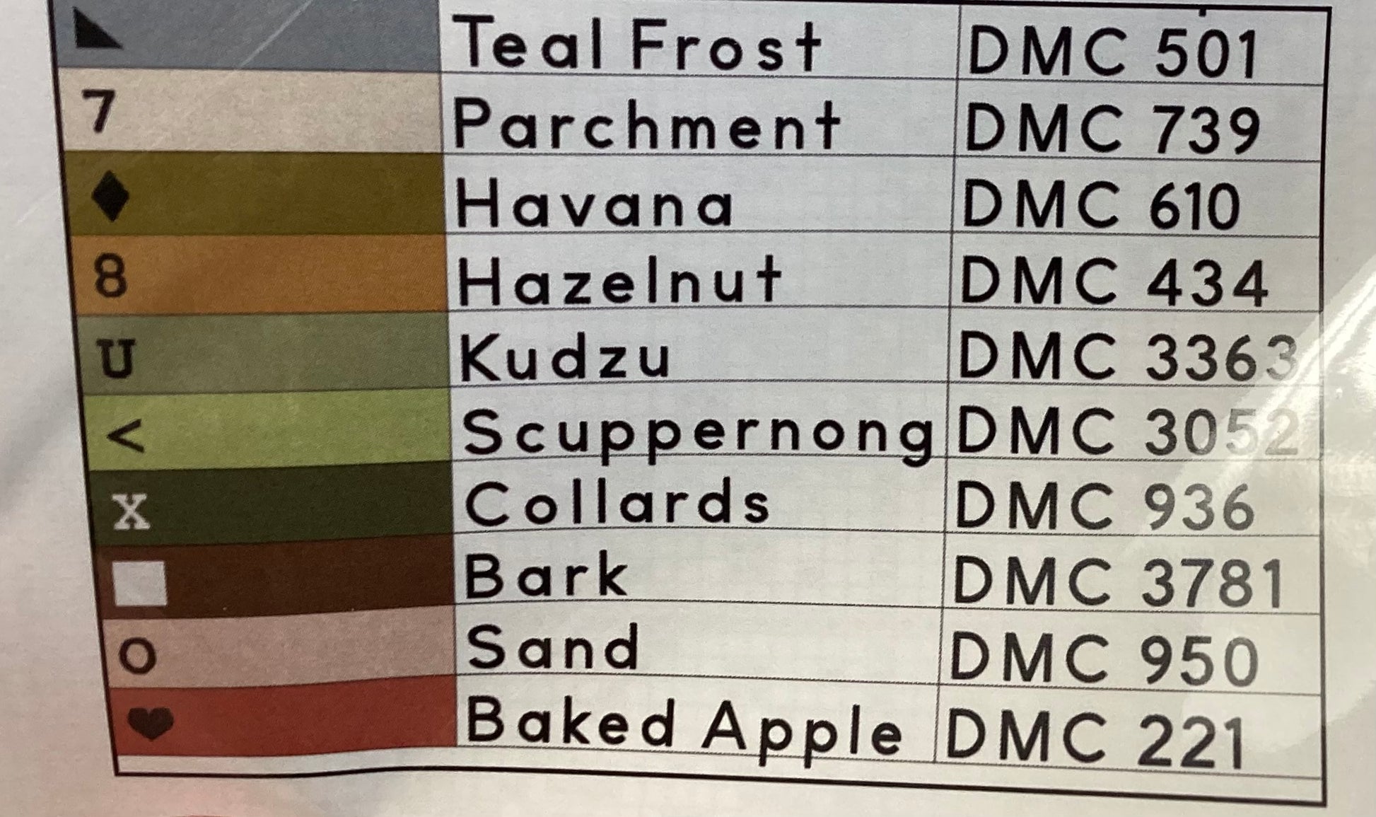 Stitch count: 80 x 120 on 32 count Straw by Weeks Dye works