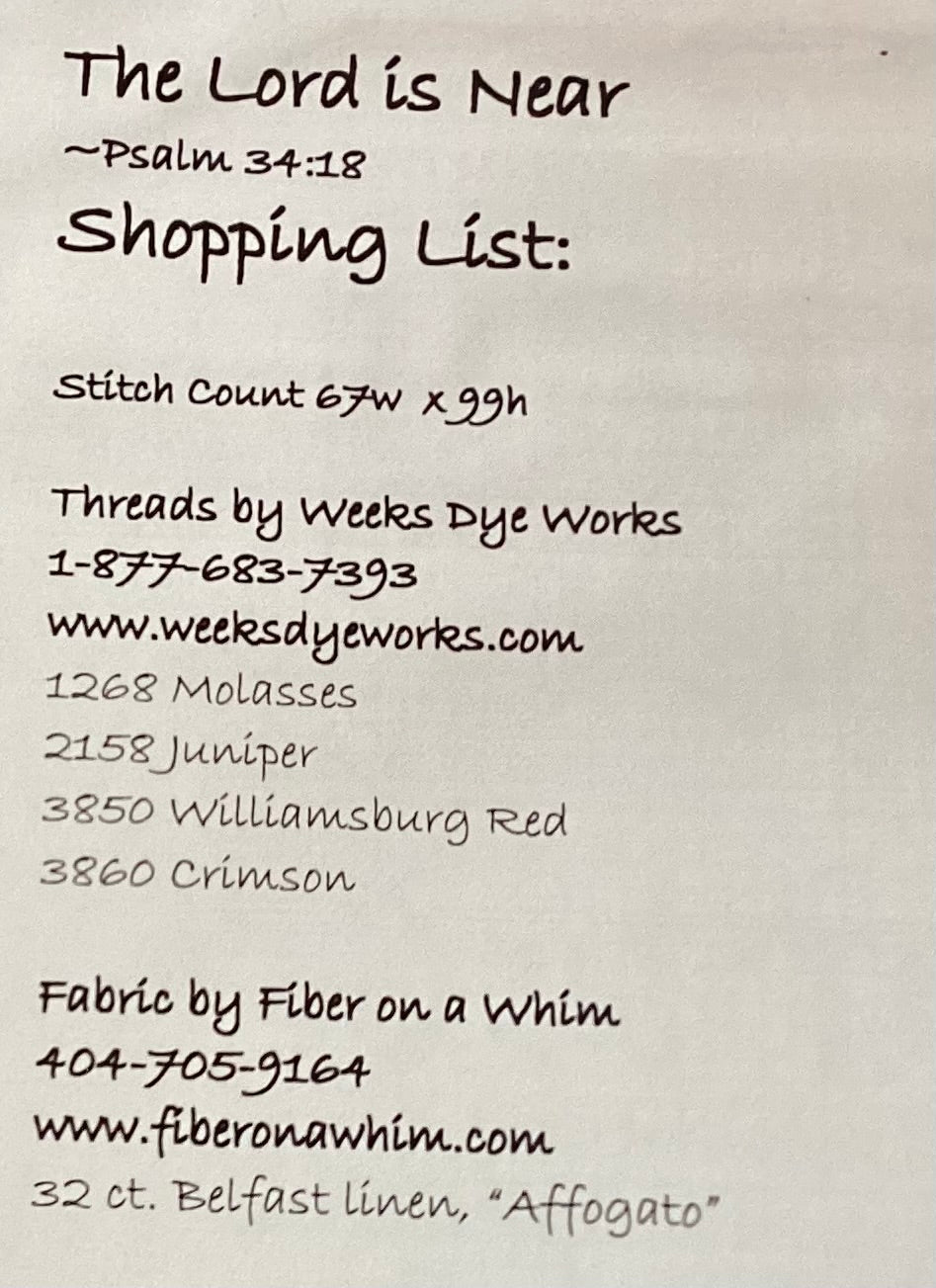 Stitch count:67 x 99 on 32 count Affogato Belfast linen
