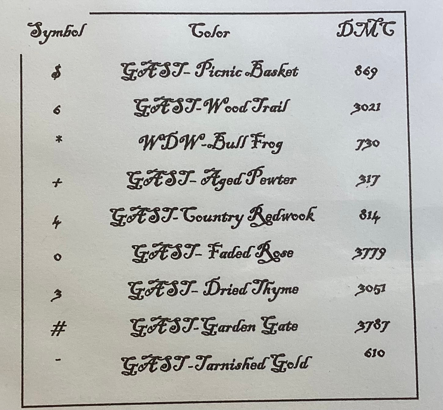 Stitch count: 75 x 74 on 30 count Crème Brûlée by R & R Reproduction