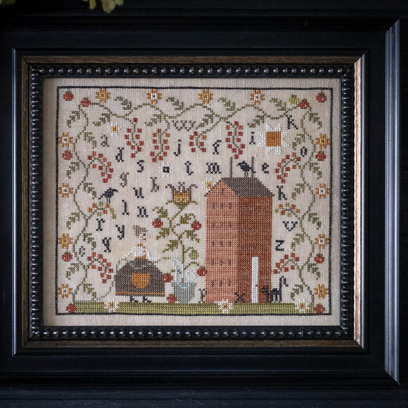 Threads used: WDW Sweet Potato, Mascara, and Grits; CC in Pea Pod, Autumn Spice, Campfire, Pine Needles, and Hickory Sticks; DMC in 352, 729, 730, 840, 950, 3022, 3761, and 3776.
