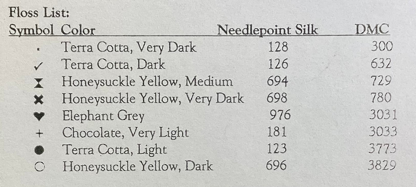 Stitch count: 71 x 77 on 40 count Antique Cotton from R & R Reproduction