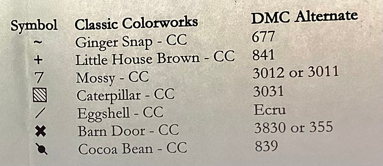 Stitch count:49 x 47 on 32 count Irish Crème from R & R Reproduction