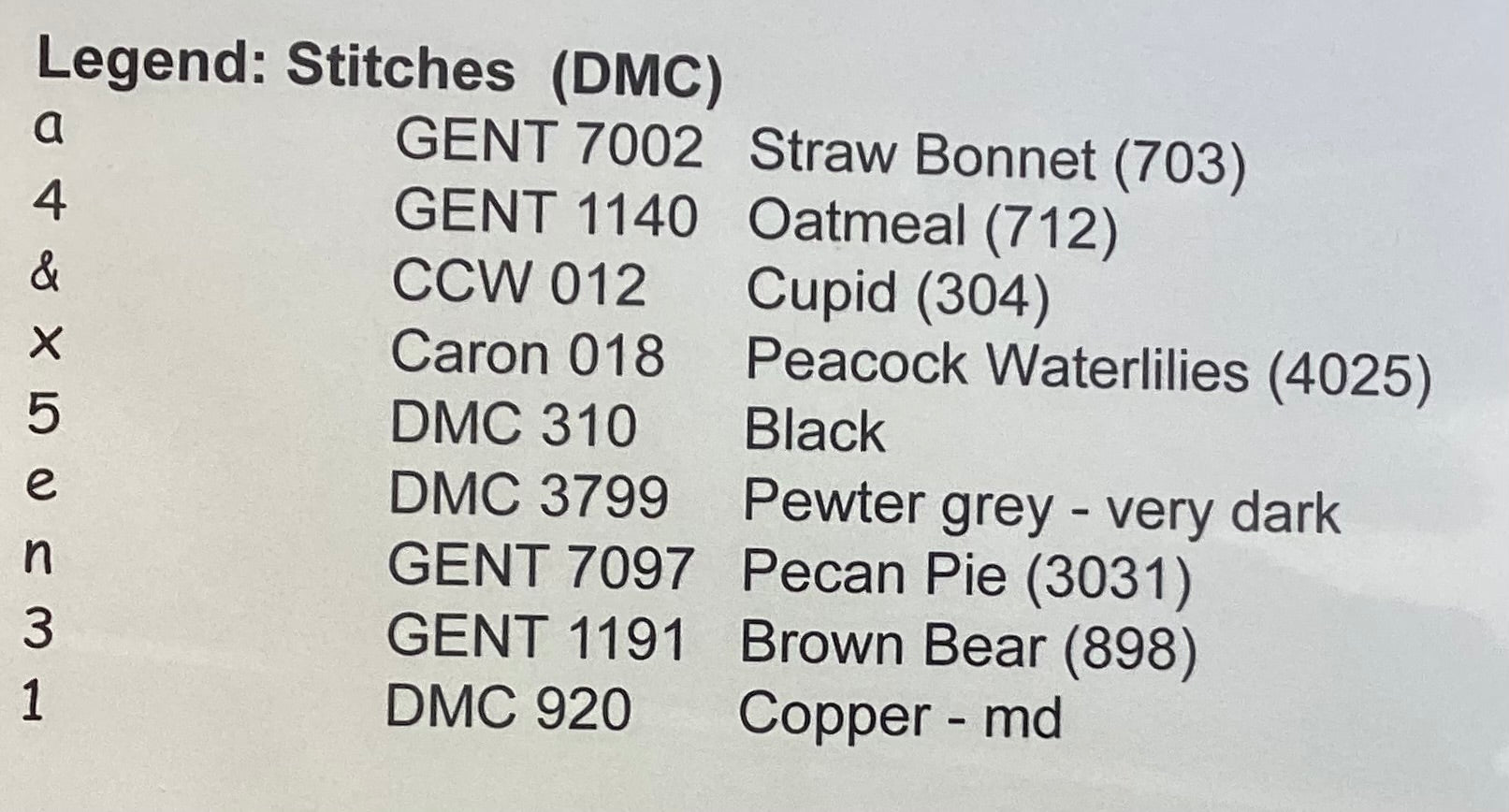 Stitch count: 64 x 60 on 28 count Raw Cahsel from Wichelt