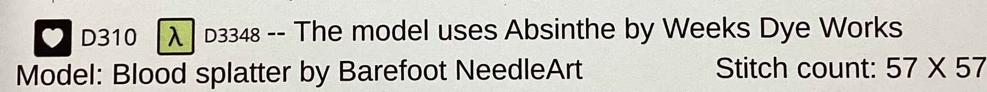 Stitch count: 57 x 57 on 14 Count Aida in Blood Splatter by Barefoot NeedleArt