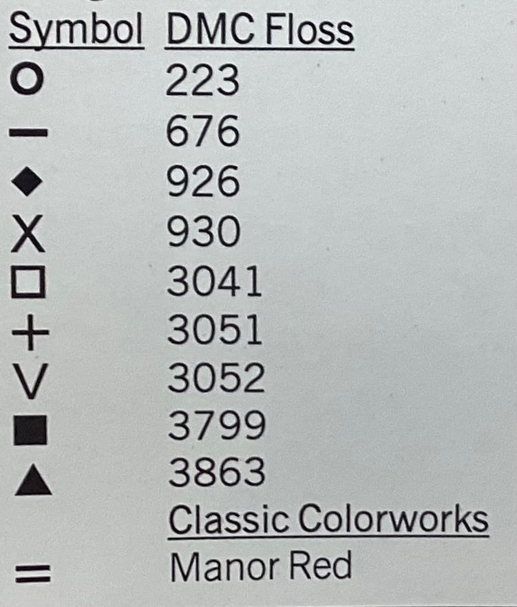 Stitch count: 50 x 50 on 30 count Lght Khaki by Weeks Dye Works